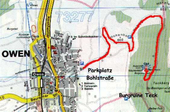 Die Strecke: Das Rennen findet am "schwäbischen Mont Ventoux" statt, dem Teckberg. Die Streckenlänge beträgt ca. 3700m bei einem Höhenunterschied von ca. 350m. Start ist am Parkplatz Bohlstraße in Owen - Ziel ist der Torbogen der Burgruine Teck. | ||||||||||||||||||||||||||||||||||||||||||||||||||||||||||||