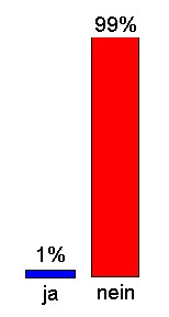 Um hier noch die letzte Umfrage, die eigens für das Rennen bei EMNID in Auftrag gegeben wurde. Dabei wurden 1045 repräsentativ ausgesuchte Bundesbürger folgendes gefragt: Glauben Sie, dass der Radrennfahrer, der nur auf seine Muskelkraft setzen kann, eine Chance hat gegen den Fahrer mit dem Hilfsmotor? Das Ergebnis kann niemanden, der einigermaßen bei Verstand ist, überraschen: |